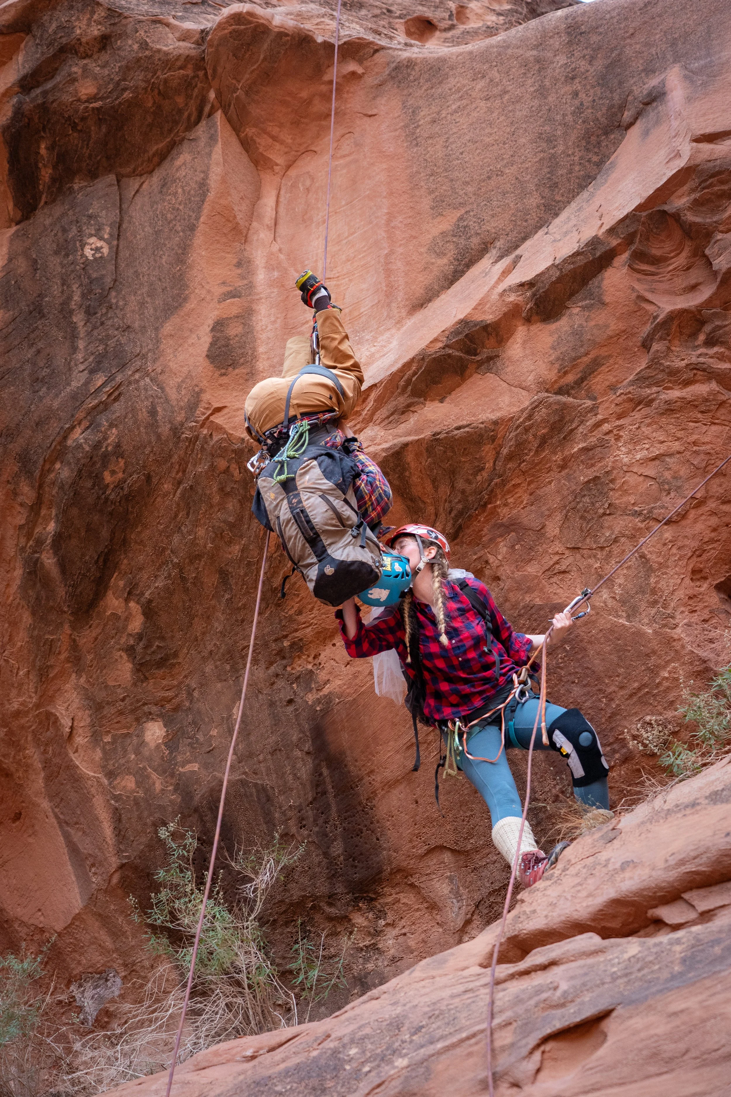 The rock glowed in the rising sun as they rigged their harnesses and ropes for four different descents through the canyon. For each one, I’d rappel down first and get in position to capture the best possible angles. Then one by one, Haley and Ralfy would slide and even leap down the rock in joy, filling the canyon walls with laughter. The bliss of being in their element with the love of their life was contagious, and I was giddy with excitement at being able to capture such candid connection!