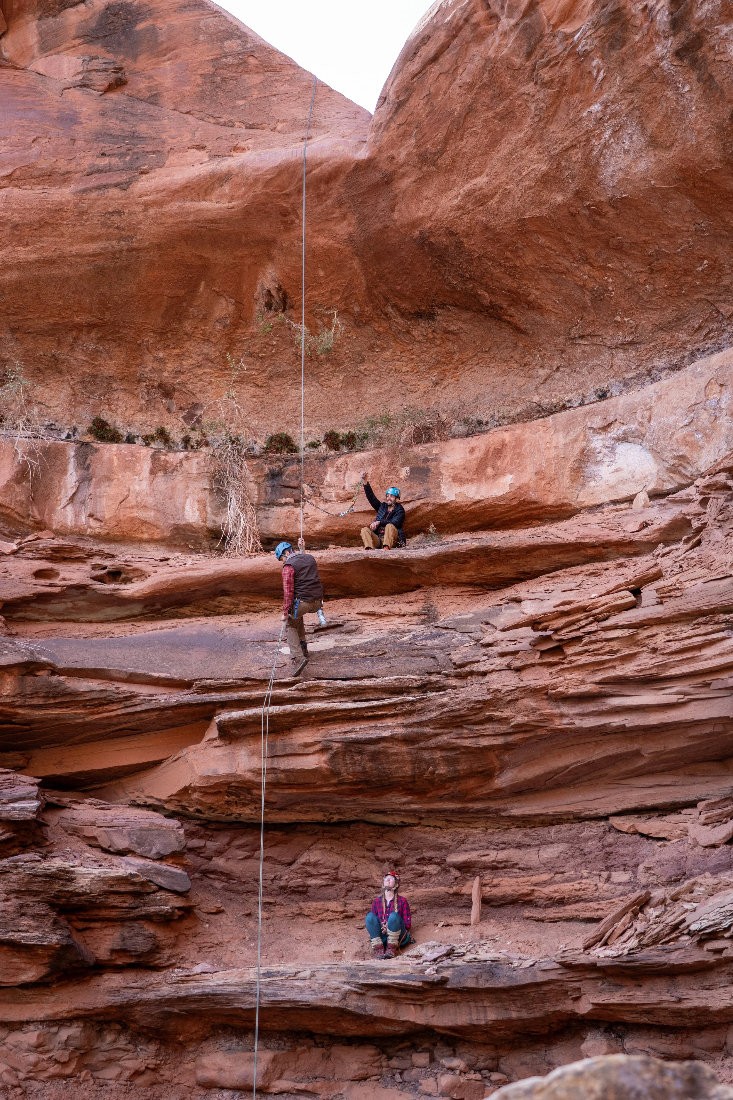 Friends and family who didn’t rappel with them hiked in from the trailhead to meet at the base of the ceremony ledge. They chose different rocks for seats and looked up to the ledge, where Haley and Ralfy held hands for the first time as newlyweds.